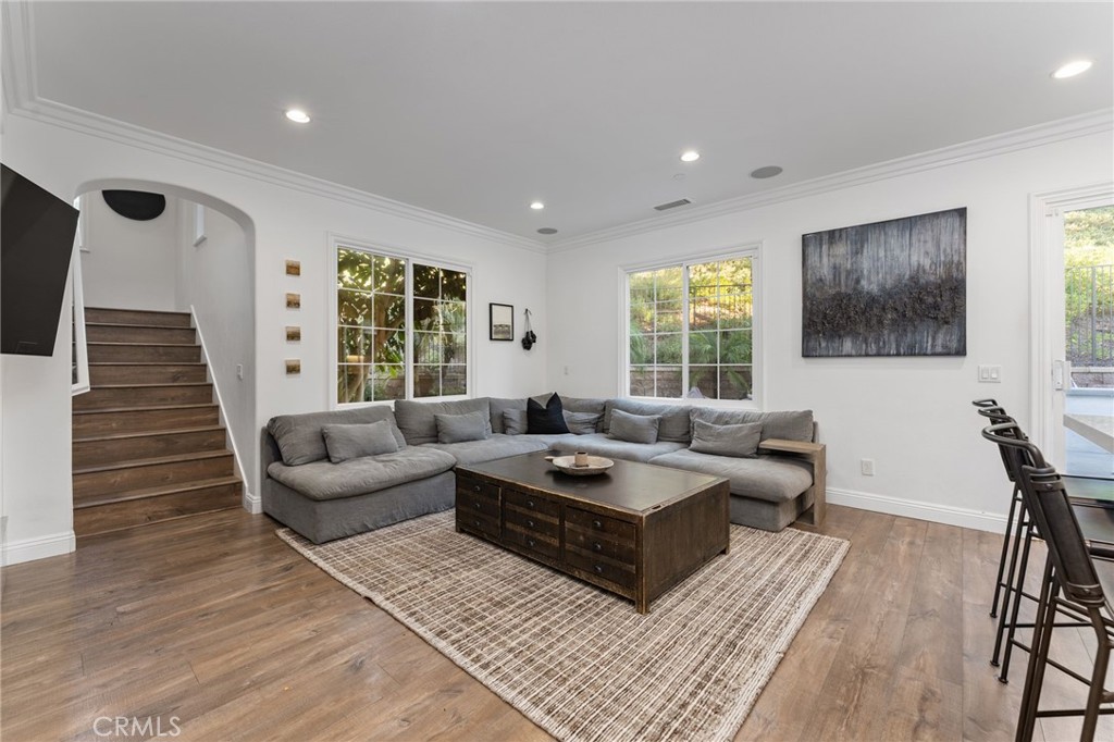 RARE Opportunity- this special Arborel 3X residence is sited on an oversized corner lot with its own large driveway. This highly desired Plan 3X residence offers exceptional privacy with just one neighboring home, and is larger than a standard Plan 3 with an oversized downstairs office/den. Welcome inside a light-filled main level with hardwood type floors throughout. At the heart of the home is the great room, complete with a family room with fireplace and built-ins that flows into the gourmet kitchen perfect for both entertaining and everyday living. The kitchen features a massive island with seating, designer finishes, quality stainless appliances, a built-in wine fridge, and a large walk-in pantry. Sliding doors open to your backyard retreat with a spacious patio and lawn, equipped with a built-in BBQ ideal for outdoor gatherings. Upstairs, three bedrooms and two full baths include your primary suite with a luxurious en-suite bathroom. The primary bath showcases double sinks, an expansive walk-in spa like shower, and a spacious walk-in closet. The attached two-car garage provides ample additional storage space. Arborel residents enjoy celebrated community amenities including resort-style pools, spa, cabanas, clubhouse, BBQ areas, and hiking trails, all within minutes of top-rated schools, beaches, and premier shopping and dining destinations. A rare combination of privacy, space, and amenities in this sought-after community.
