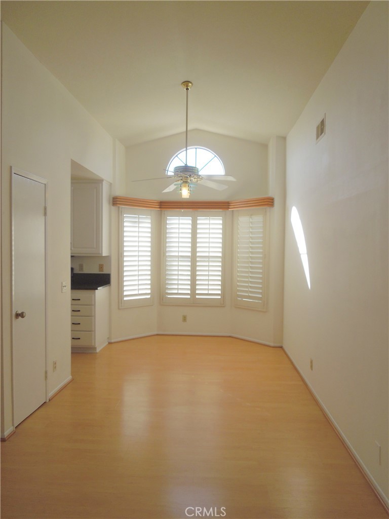 Great upper unit with views of trees and pool beyond! Sunny, light and bright with high ceilings. Features 2 bedrooms and 2 baths and inside laundry with a stacked washer and dryer.Beautiful remodeled kitchen with stone counters and updated cabinets. Good size dining room with bay window. Laminate flooring, ceiling fans and built-ins in the living room and master bedroom. Plantation shutters. Carpet in bedrooms, Nice patio for relaxing. Extra storage closet outside. Detached 1 car garage. Beautiful remodeled pool area. There is a great park at entry to tract for sports and picnics. Close to shopping, schools and freeways.
