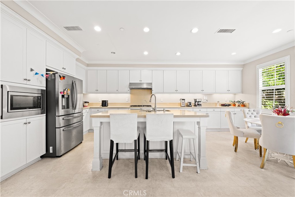 Welcome to this detached spectacularly previous model home with 3 bedroom, 2.5 bedroom in the highly sought-after Stonegate community of Irvine. This home on a premium corner lot and offering 2,047 sqft of open living space., bright open plan plan, an expanded dining room upgraded from a California room, perfectly designed for modern comfort. Large kitchen including quartz countertops, center island, recessed lighting, windows with premium split-shutters. Upstairs, the luxurious primary suite with dual vanities, large walk-in closet. Two secondary bedrooms, a full bath, and an upstairs laundry room offer comfort and convenience. A professionally landscaped backyard with a lot of fruit trees, flowers, perfect for