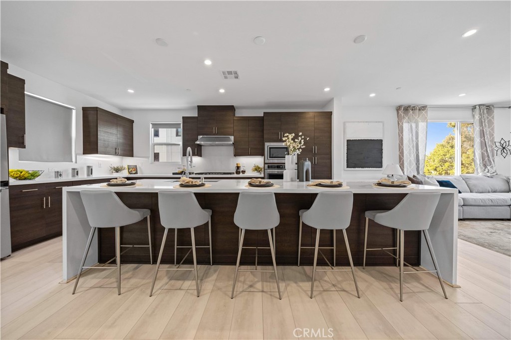 The home features top-quality quartz countertops, a large center island, and a modern chef’s kitchen ideal for entertaining and everyday living. Hard flooring throughout adds a sleek, contemporary look with easy maintenance.