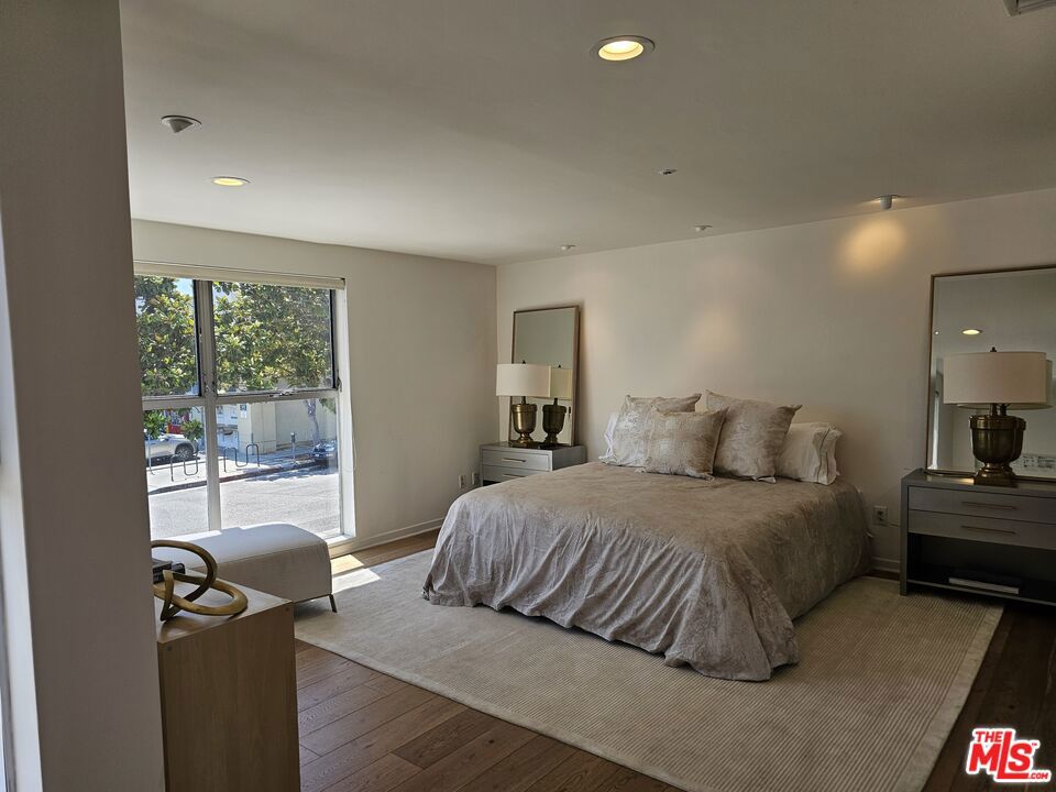 This spacious unit boasts nearly 1,600 square feet of living area, offering the feel of a large townhome. You'll enter from a secure first-floor private entry. The main living area is open and filled with natural light, providing ample room for comfortable seating and more. Just off the entrance, a perfect dining nook flows into the renovated kitchen, which features brand-new stainless steel appliances and enough space for a breakfast table. A renovated full bathroom is also conveniently located off the kitchen. For added convenience, a new stackable washer/dryer is located in a kitchen closet, along with two additional closets on the first level for extra storage. Upstairs, the bedroom level offers a space for a dresser or cabinet and a generously sized walk-in closet. The landing opens to a versatile area ideal for a home office or an additional sitting area, with the second bathroom located to the left. The bedroom itself is open to the upper level, maintaining privacy from the first floor. Large windows throughout the unit flood the space with light, while mature trees outside enhance privacy. The unit has been updated with light engineered hardwood floors, fresh paint, recessed lighting, and window treatments. Centrally located on the Westside, with easy access to the 10 Freeway, this unit is perfect for those seeking a bright, spacious, and updated home with the added flexibility of a live/work environment.