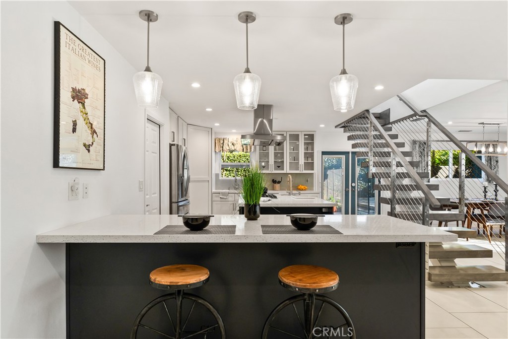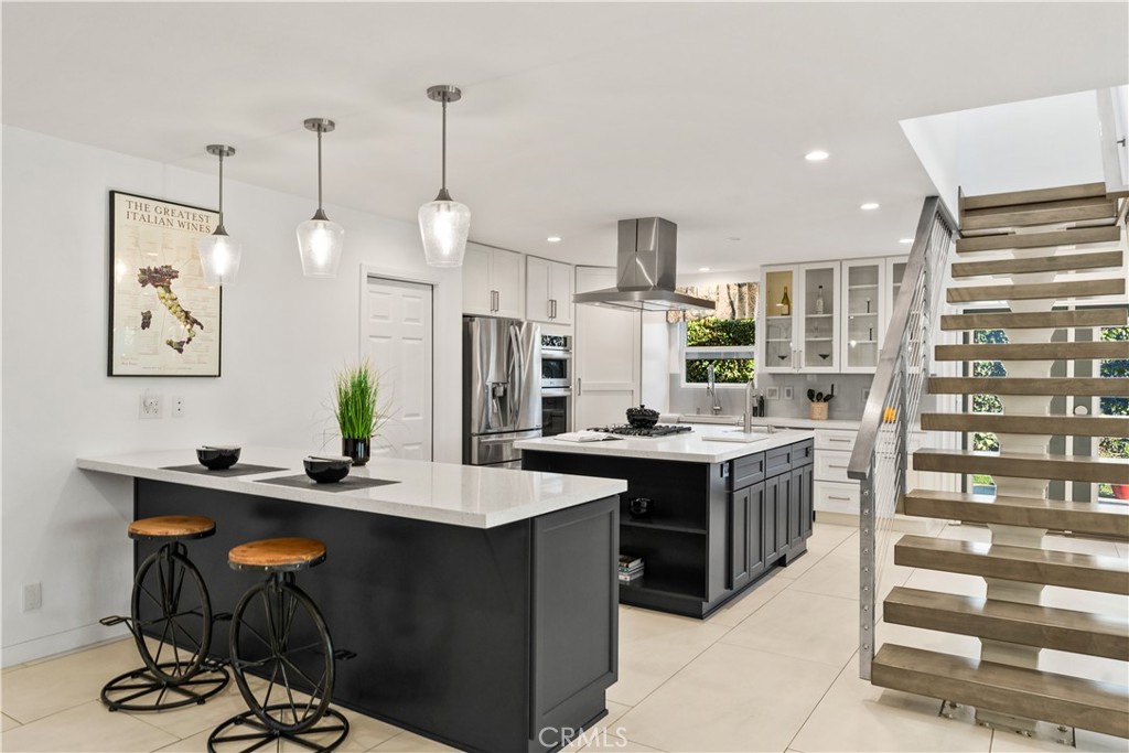Welcome to this unbelievably beautiful home that has been extensively remodeled throughout with no expense spared. Upon entry you will be captivated by the open and inviting floorplan and the flow it provides. The gourmet chef's kitchen is unbelievable, from its dining peninsula to its cooking island to its large discreet pantry, it's move-in ready! All stainless appliances are included. The dining area is convenient to the kitchen and has a fireplace for dining ambiance. The downstairs bedroom wing is lined in new cabinetry and linen storage and features 3 bedrooms and 2 baths, with a downstairs primary bedroom with its own private bath and office/retreat area. The second primary bedroom is located upstairs and is spacious with a fireplace, walk-in closet, and gorgeous bath as well as a separate den/office perfect for working from home. There is direct garage access to a finished garage with lots of storage cabinetry, a workshop, washer and dryer, extra refrigerator, and access to the backyard. The yard is filled with mature fruit trees and lots of greenery, as well as a heated spa. Solar panels are owned and paid for. All electric is ultra efficient and the whole house has been wired by a master electrician and has a new 200 amp panel. Milgard Windows throughout as well as wiring for sound and security. Newer paint and carpet and newer drought-friendly landscaping complete the picture of this beautiful home, move-in ready! Homes like this one don't come along often. Don't miss it!