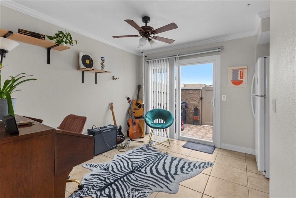 Relax in the cozy living room featuring a fireplace, perfect for unwinding or entertaining guests. Step outside to your private backyard patio with direct access from the unit, ideal for enjoying indoor-outdoor living. The home includes one designated covered parking space and is currently tenant-occupied, presenting a fantastic opportunity for investors or those planning to secure a future residence or getaway in a vibrant beach town.