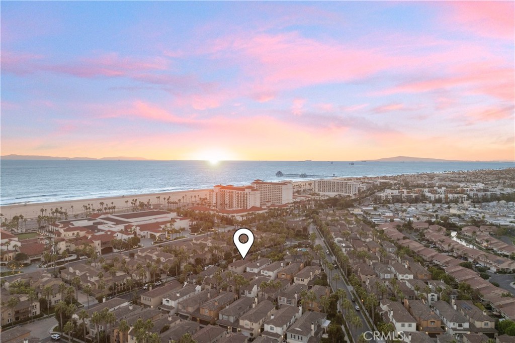 Experience resort-inspired coastal living in one of Huntington Beach’s most prestigious gated communities — The Waterfront. This exquisite 4-bedroom, 3.5-bath residence offers the community’s largest floor plan and an unmatched location just across from the ocean, moments from world-class dining, surf breaks, and resort destinations. Designed with sophistication and comfort in mind, the home’s lower level features rich oak floors leading to a chef’s kitchen appointed with a DCS 6-burner cooktop and oven, SubZero refrigerator, soft-close cabinetry, quartz countertops, and an impressive Brazilian brushed granite island. The open layout flows seamlessly into the living and dining areas, creating an inviting atmosphere for both everyday living and entertaining. A versatile downstairs bedroom has been thoughtfully transformed into a soundproof theater or music studio, complete with a stage and projector screen—ideal for immersive movie nights or professional-quality music sessions. Upstairs, two spacious guest suites include walk-in closets, one with a private en suite, while the primary suite impresses with vaulted ceilings, a walk-in closet, and views of the sparkling community pool. With exclusive access to resort-style amenities and an unbeatable location just moments from the sand, this rare offering combines elegance, comfort, and the best of coastal living.