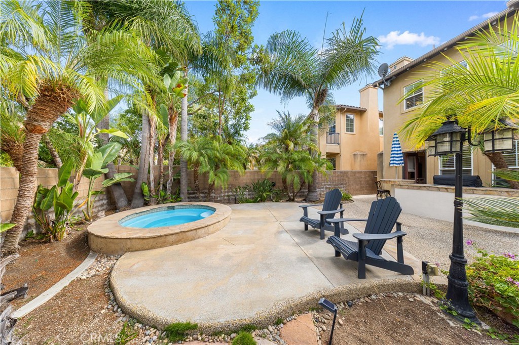 The true highlight is the expansive private backyard—rare in Irvine—with mature palms, lush landscaping, stone pavers, and a hot tub, perfect for entertaining or relaxing in total privacy. Upstairs, the primary suite offers a private balcony and a spa-inspired bathroom with dual vanities, soaking tub, separate shower, and two walk-in closets.