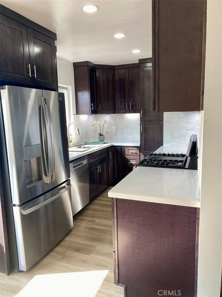 Move-In Special! Enjoy half off your first month’s rent with an approved application. This beautifully remodeled upper one-bedroom, one-bath unit offers modern comfort and style. Step inside to find fresh paint and sleek laminate wood flooring throughout, complemented by all-new appliances including a refrigerator and gas stove/oven. The kitchen shines with brand-new cabinets and countertops, while the upgraded bathroom adds a touch of luxury. Thoughtful details like 2" faux wood blinds enhance the space, and residents can take advantage of the inviting common area patio and convenient on-site laundry. Perfectly located near the beach, Broadway’s vibrant restaurants, and shopping, this apartment combines coastal living with everyday convenience.