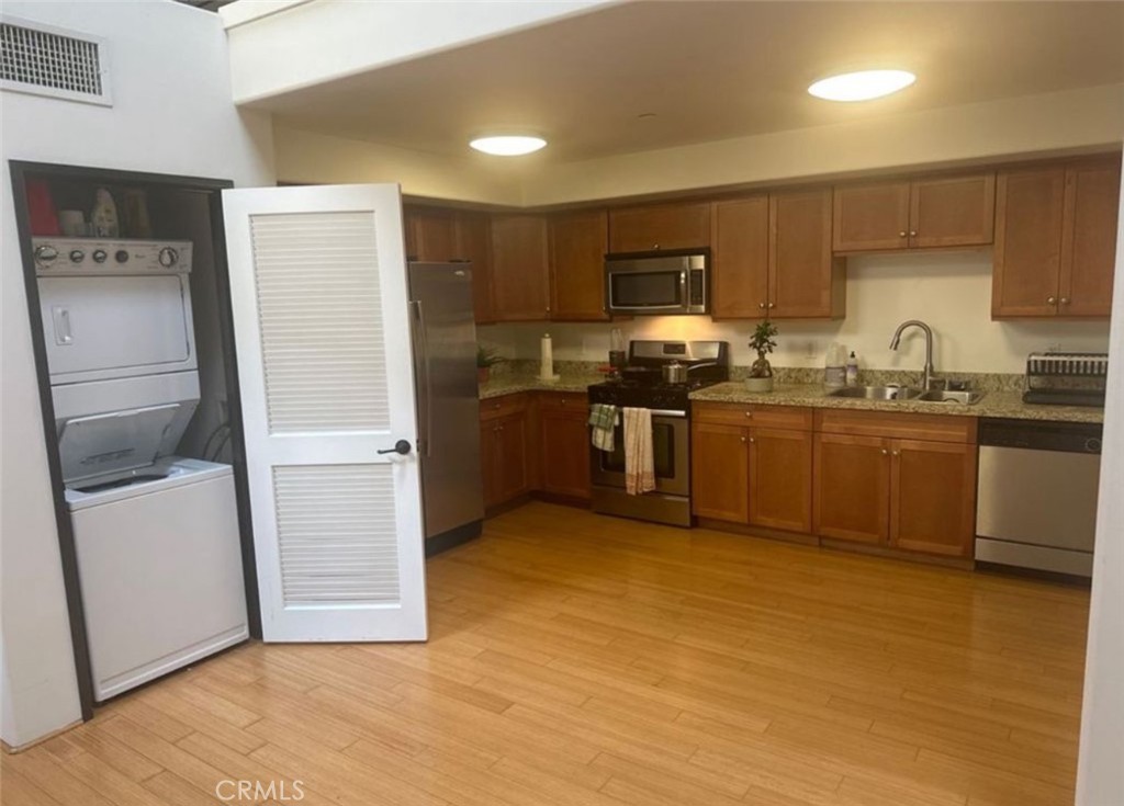 1 bedroom + loft, 2 bath condo in downtown San Pedro. Nice open concept living room, hardwood floors, updated kitchen with stainless steel appliances included, inside laundry, balcony, and plenty of storage. The community has a beautiful courtyard and the resident can have access to a 2 car garage (extra monthly).