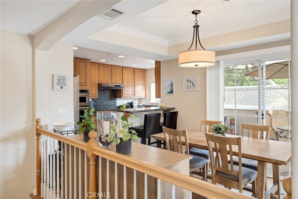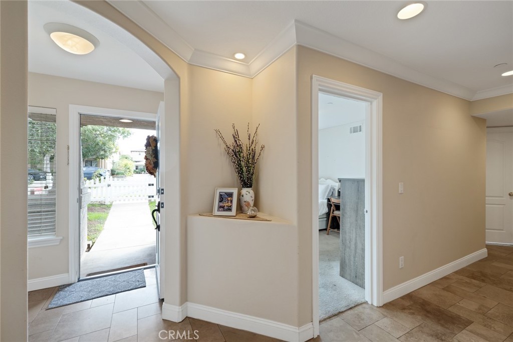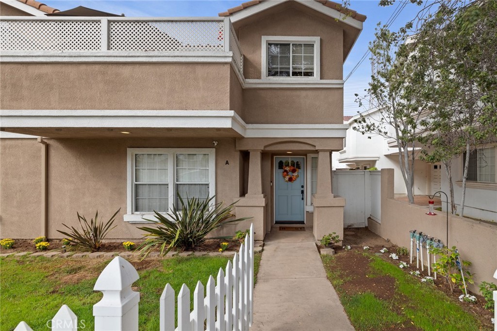 An enclosed front yard with a white picket fence, colorful roses, and even a sweet Cara Cara orange tree sets the stage for this sunny south-facing front-unit townhome. This welcoming outdoor space is perfect for morning coffee, tending your garden, or simply enjoying the neighborhood charm. Step inside through the formal stone-tiled entry and discover a spacious, flexible floorplan designed for both comfort and convenience. Two bedrooms and a full bathroom are located downstairs, ideal for guests, extended family, or a quiet home office. Upstairs, the main living areas open up dramatically with soaring ceilings, a light stone fireplace focal point, and expansive windows that invite in natural sunlight throughout the day. The heart of the home is the generous living room, seamlessly connected to the dining area and kitchen by newer wide-plank oak hardwood flooring. Entertain with ease here, whether hosting the holidays in the dining room, enjoying casual meals at the breakfast bar, or stepping out to one of two balconies for fresh air and relaxation. The open flow makes it a breeze to gather with loved ones, while the kitchen is thoughtfully equipped with stainless steel appliances, granite counters and backsplash, light wood cabinetry, and a pantry for convenient storage. A convenient half bath off the hall serves the living and entertaining areas, ensuring ease for both residents and visitors. Beyond, your spacious primary suite awaits, complete with a vaulted ceiling, walk-in closet, and a spa-style bathroom featuring dual sinks, a jetted tub, a separate shower, and a private water closet. Adjacent to the primary suite is a rare 4th bedroom upstairs perfect for a nursery, home office, or cozy den, adding valuable flexibility. Downstairs, two additional bedrooms share a full bathroom and are located near the in-home laundry, making everyday routines seamless. Additional highlights include storage under the stairs, central air conditioning, multiple ceiling fans, and a two-car attached garage with direct access and even more storage space. This intimate three-unit community is well maintained and recently refreshed with exterior paint for a crisp sense of arrival. Ideally located near top-rated schools, parks, shops, restaurants, the beach, and freeway access. This residence offers the perfect mix of coastal lifestyle, daily convenience, and the benefit of four bedrooms, all at an exceptional value in the heart of the South Bay, ready to welcome you home.