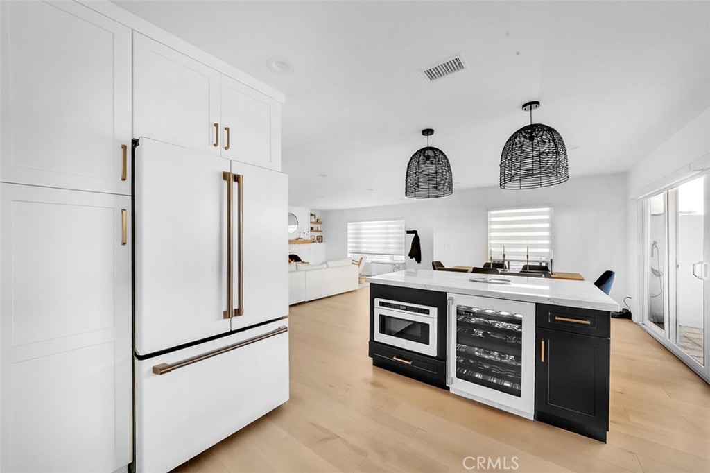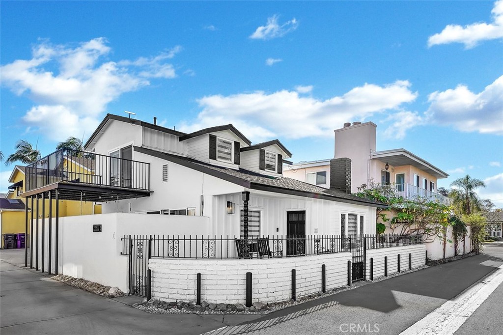 This recently remodeled single-family home is designed to meet the highest standards. Situated on a unique corner lot of approximately 2900 sq ft with new turf, it offers a serene setting in a quiet, family-friendly neighborhood. Begin your mornings with coffee on the porch,overlooking the picturesque bay view. The main living area features an open-concept design with a cozy fireplace, exuding a comfortable modern farmhouse vibe. The gourmet kitchen is a chef's dream, equipped with upscale Cafe' matte white appliances, custom design elements, a wine fridge, new windows and sliders,quartzite countertops,bespoke cabinetry,and waterproof Mohawk RevWood flooring throughout. The spacious dining area provides access to a private patio with peek-a-boo views of the bay. The first floor also includes a full bath and a separate laundry area for added convenience. Upstairs, you'll find three bedrooms, with the master suite offering an expansive balcony that showcases views of Marine Stadium and stunning sunsets. Two brand-new bathrooms upstairs exhibit designer elegance, catering to both the master suite and family needs. The property is equipped with brand-new air conditioning, updated electrical systems, motorized shades and more. The two-car garage includes a driveway for additional parking and features a 240-volt charging station for electric vehicles. Located in a peaceful neighborhood, this home offers a serene environment ideal for families. Enjoy leisurely strolls or bike rides around the bay, and take advantage of the proximity to shops, parks, and restaurants in Belmont Shore. Experience the perfect blend of modern farmhouse and contemporary amenities in thes beautifully renovated home.
