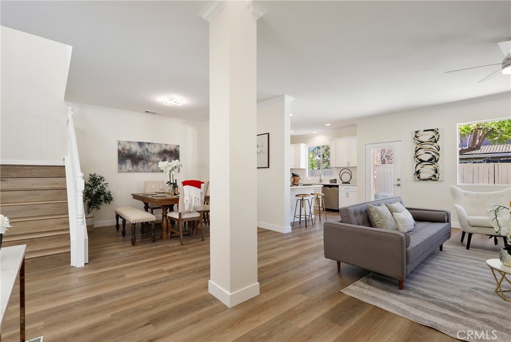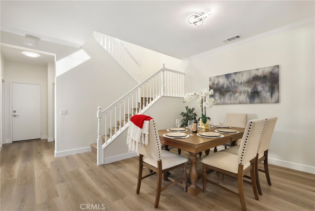 Discover the epitome of refined living in this exquisite residence 5 bedroom , 3 full bath home nestled within the prestigious gated community of Harvard Square. Boasting an airy open-concept layout, the living room, dining area, and kitchen harmonize effortlessly, creating an inviting space perfect for both relaxation and entertainment. Culinary enthusiasts will delight in the gourmet kitchen featuring stainless steel appliances, abundant cabinetry, and sleek countertops, ensuring seamless meal preparation. Ideal for guests or a private home office, a convenient downstairs bedroom and full bath enhance the home's functionality. Fresh designer paint and brand-new luxury vinyl flooring throughout lend a contemporary and sophisticated atmosphere. Upstairs, the generously sized bedrooms offer tranquility and style, with the primary suite showcasing a spa-like bath and ample closet space. Additional storage and direct access from the attached two-car garage provide practical convenience. Step outside to the expansive backyard oasis, offering a serene retreat for outdoor gatherings or enjoying the California sunshine in privacy. Residents of this secure gated community relish access to a serene park and sprawling green spaces, perfect for leisure and recreation. Situated within an award-winning school district, this home is mere minutes from top-rated schools, Trader Joe’s, The Irvine & Tustin Marketplace, The District at Tustin Legacy, and major commuter routes including the 241 Toll Road and the 5 Freeway. Embrace the opportunity to own a turnkey residence in a coveted location with low HOA fees and No Mello-Roos, combining convenience, elegance, and an exceptional lifestyle. Don’t miss out on this remarkable chance to call it your own!