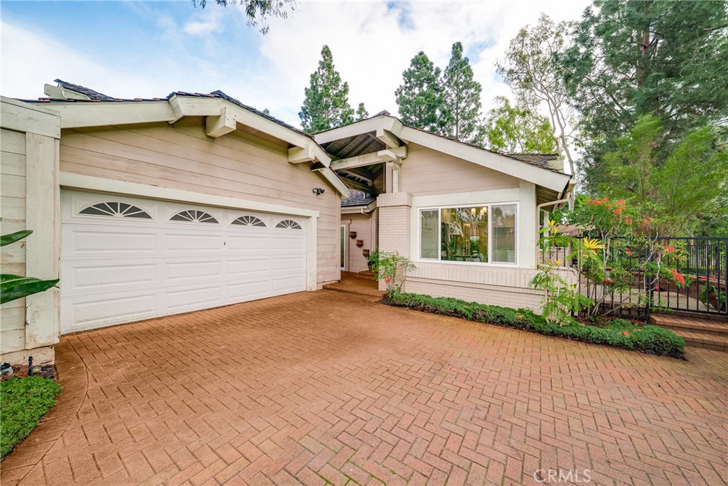 The home makes a grand first impression with a long, sweeping brick-paved driveway that leads gracefully to the front entrance. Positioned directly adjacent to a lush greenbelt, the property offers breathtaking views of the park and surrounding mountains. The extensively renovated interior features an expansive open-concept layout with vaulted ceilings, designer flooring, and an abundance of natural light. At the heart of the home is an open kitchen boasting quartz countertops, custom cabinetry, and premium stainless-steel appliances. A charming garden window and breakfast nook provide a serene vantage point to enjoy the natural beauty of the landscape.