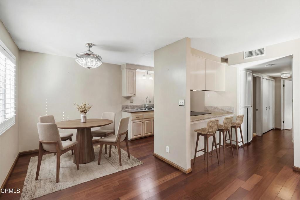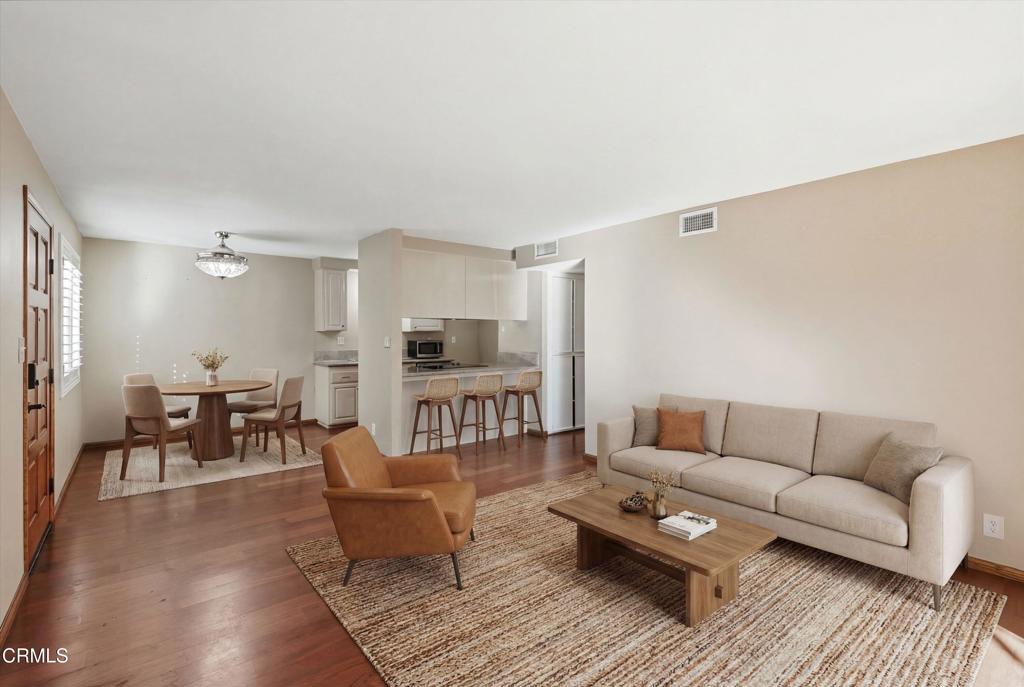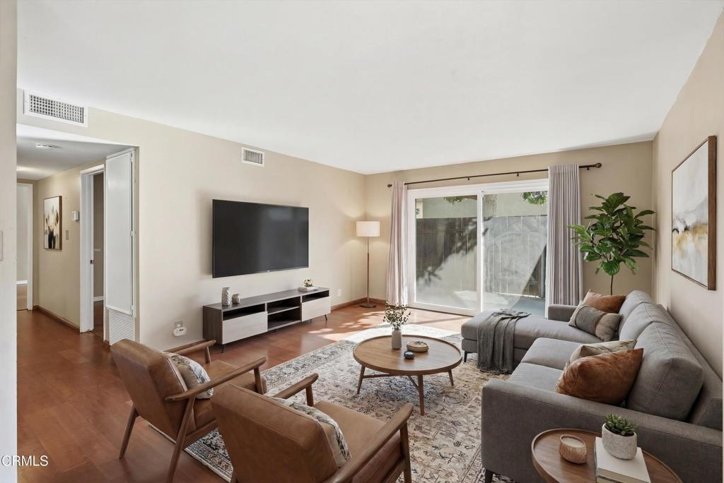 Welcome to this stylish, single-level ground-floor corner condo on a quiet street in desirable Temple City. Designed for easy living, this home blends comfort, function, and indoor-outdoor flow--perfect for first-time buyers, busy professionals, or those looking to downsize without compromise. Inside, you'll find wood-style flooring, dual-pane windows, and the convenience of side-by-side in-unit laundry. The kitchen features granite countertops and opens seamlessly to the dining and living areas, creating an open, functional layout ideal for everyday living or hosting friends. A standout feature of the home is the large, private patio--an extension of the living space that's perfect for morning coffee, weekend gatherings, container gardening, or simply enjoying time outdoors in a peaceful setting. The primary bedroom offers ample closet and storage space, while the second bedroom is versatile enough to serve as a guest room, home office, or creative space, with easy access to a full hall bathroom. Additional perks include central air and heat for year-round comfort and a detached two-car garage. This move-in-ready Temple City condo offers the privacy of a corner unit, the ease of single-level living, and a lifestyle that fits today's buyers. Don't miss the opportunity to make this inviting home your own. Some images have been virtually staged to illustrate potential furniture placement. Property is currently unfurnished.