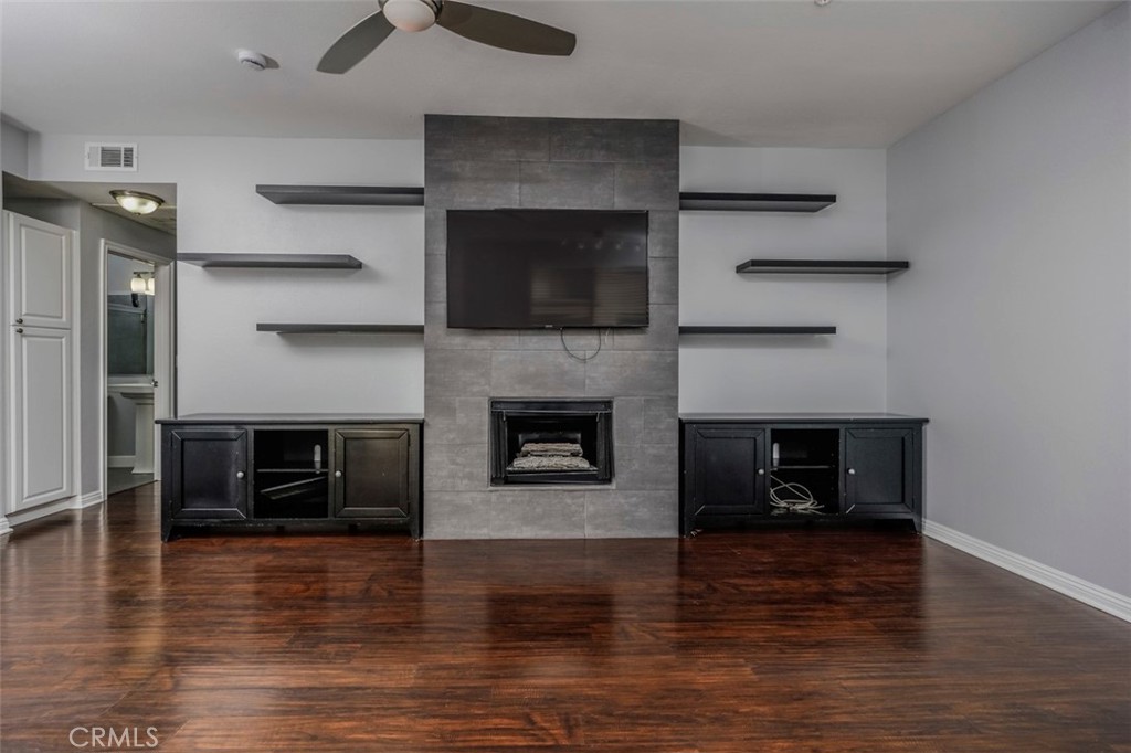 Enjoy the modern look and designer touches in an upgraded unit at the desirable Emerald Villas. The kitchen, bathrooms, living room and bedrooms have been redone bringing a cohesive cosmopolitan look. Kitchen has newer cabinets with black quartz countertops, mosaic backslash, stainless steel appliances and cooktop vent. Livingroom has statement making fireplace and stylish shelving. Warm looking hardwood flooring and designer paint that run throughout the entire unit give it a rich look. Bathrooms have newer shower doors, title, vanity and flooring. No common walls and two parking spaces help elevate this special property and make it unique. Community has resort style pool, beautiful entry courtyard, rooftop and gym for your workouts. Great downtown location close to the nightlife, park, bike path, freeways and everything you need and want for a fantastic urban life.