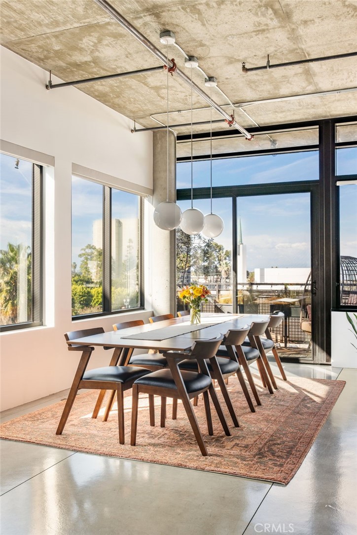 Inside, polished concrete floors, soaring ceilings, exposed ductwork, and clean architectural lines set the tone. The chef’s kitchen features stainless steel appliances, granite counters, and a freestanding island perfect for cooking, hosting, or casual dining. The layout flows effortlessly between living, dining, working, and lounging moments—ideal for those who value both style and functionality.