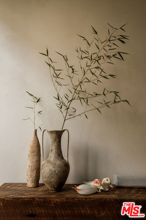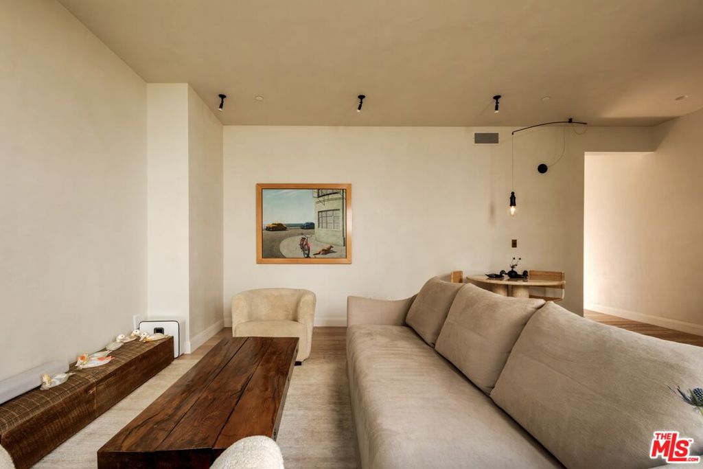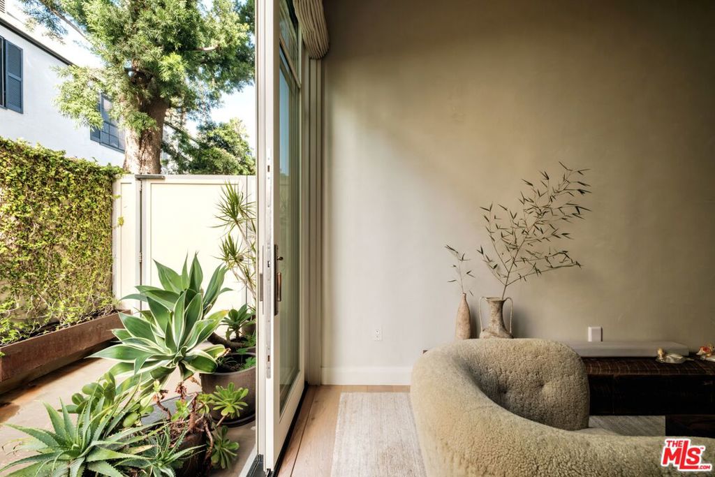 Built in 2018 and located just five blocks from Santa Monica Beach, this bright townhome blends thoughtful design with a private, multi-level layout. Executed by a renowned interior designer, the residence offers the option to be acquired furnished and styled. Custom hardware, paint treatments, furniture, and curated art complement pieces sourced from Europe, South America, and Los Angeles, resulting in a warm, balanced interior with intentional flow. From the two-car garage with built-in storage, private interior stairs lead to the main living level, where open living, dining, and kitchen spaces connect seamlessly. The living room features a Samsung ultra-short-throw smart laser home theater projector, while the kitchen is finished with distinctive cabinetry, a custom brass sink, Brazilian quartzite countertops, and a professional-grade Bertazzoni gas range. Also on this level is a bedroom currently configured as a home office with built-in cabinetry and furnishings, easily convertible back to a bedroom if desired. A full bathroom with a Belgian limestone sink, travertine tub, and contemporary shower completes the floor. A second staircase leads to the upper level, where the primary suite and an additional bedroom are positioned. The primary bedroom features floor-to-ceiling sliding doors and windows, two closets including a walk-in, and an en-suite bathroom with double sinks and Waterworks fixtures. The secondary bedroom also includes its own en-suite bathroom and abundant natural light from an oversized window. Above, a private rooftop deck of approximately 750 square feet extends the living space outdoors, offering city and mountain views. The deck is equipped with a Sol built-in BBQ, Brown and Jordan fire table, and integrated Sonos sound system well suited for both entertaining and everyday use. Located within the Roosevelt Elementary School district and moments from Montana Avenue's shops and dining, with the beach just five blocks away. List price is for the unfurnished home. Furniture may be available separately.
