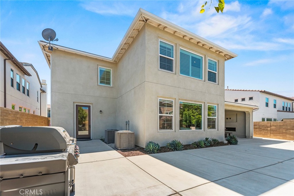 The backyard is perfect for Southern California living, featuring a California Room with a fireplace, with an outdoor kitchen bar—ideal for relaxation or entertaining.