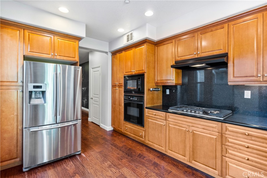 Gorgeous 3-bedroom, 2.5-bath home located in the highly sought-after Woodbury community of Irvine. The first level features rich wood flooring, recessed lighting, and large windows that flood the space with natural light. Upon entry, you’re welcomed into a spacious living room complete with a cozy fireplace, ceiling fan, and custom wallpaper accents.
