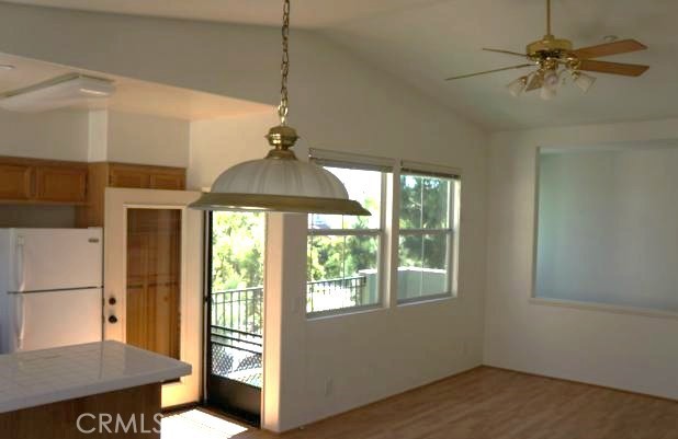 Located in the gated Oak Park community, this two-bedroom, two-bath upper end unit offers exceptional privacy with no neighbors above or below and only one shared wall. The bright, open floor plan features vaulted ceilings, abundant natural light, hard surface flooring in main areas, carpeted bedrooms, and a cozy fireplace in the living room. The kitchen is bright with ample cabinet and counter space, a French door opens to a private balcony off the kitchen—perfect for everyday living.