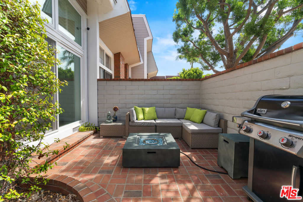 Elegantly furnished 2 bed 2.5 bath townhouse perfect for relaxing and entertaining. Located in the heart of Marina del Rey, you'll enter on the first level into a spacious living room with a fireplace, tons of natural light and a sliding glass door into the tranquility of your own private courtyard deck. The updated chef's kitchen offers quartz countertops, breakfast bar, Jenn-Air stainless steel appliances including a brand new built in microwave-oven with speed cook, Pro-Style Convection convection stove, water filtration system, Italian espresso machine (Longhi), great pantry space, farmhouse sink, brushed brass faucet & hardware, & soft close cabinets. Upstairs features the first spacious en-suite bedroom with a beautiful view, vast closet space, and down the hall, the primary suite has a Tempur-Pedic mattress with smart base (adjustable on both sides with massage function) as well as an en-suite bath featuring custom vanity, floor to ceiling marble shower, smart Toto toilet & frameless shower door. Additional features include attached 2 car garage, separate side by side washer/dryer room, security system, and part of a community that includes 3 pools & spas, lush landscaping and club room. This home is located in the best location of the complex and ideal for indoor/outdoor California living!