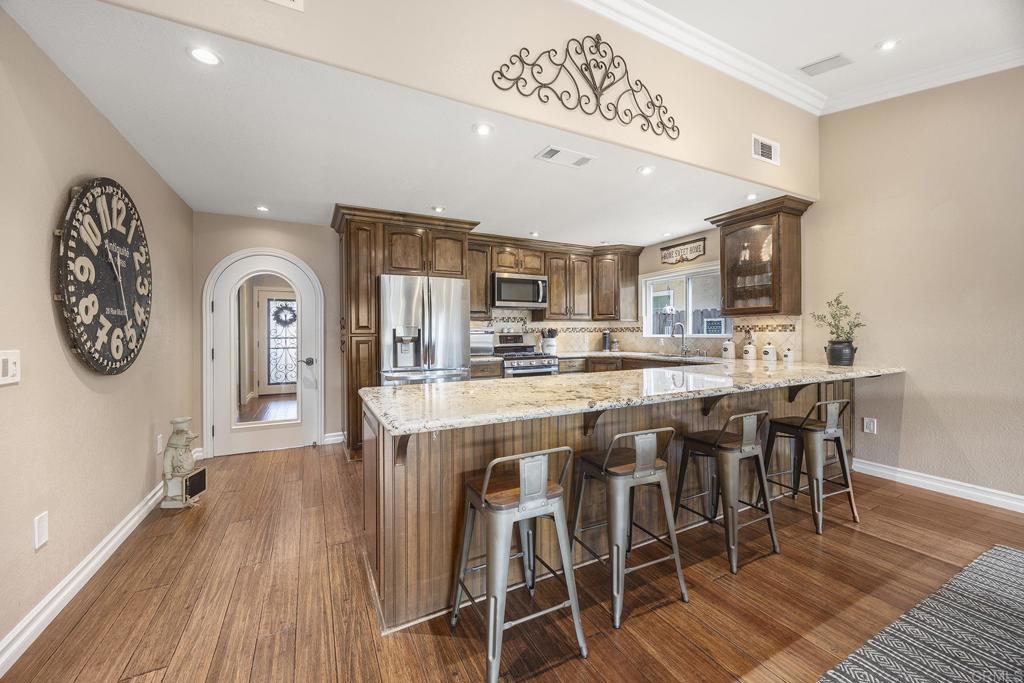 Nestled in the highly popular Irvine community of The Colony, this beautifully upgraded one story offers 3 bedrooms, 2 bathrooms, 1,380 SF & a layout that flows with ease offering the ideal combination of function, comfort & charm. Step inside to discover a bright & airy living space with soaring ceilings & an abundance of natural light. The thoughtfully designed kitchen boasts granite countertops, custom cabinets, stainless appliances & an extra long peninsula with bar seating. The spacious primary suite has a walk in closet with dual sinks, a vanity & a walk-in shower with 3 shower heads. Other upgrades include bamboo flooring, jetted soaking tub, tankless water heater, crown molding, a whole house fan & a pull down ladder in the garage to attic storage that runs the length of the whole house. Whether hosting a barbecue or soaking up the sun, the outdoor space offers endless possibilities with a built-in BBQ, an Alumawood patio cover with recessed lights, ceiling fan & outdoor heater, a low maintenance yard & multiple fruit trees. Ideally situated down the street from a 7.5-acre park that includes the award-winning College Park Elementary School, playgrounds, volleyball court, tennis & basketball courts & plenty of space for outdoor activities. Residents of this community also enjoy access to 3 swimming pools & a clubhouse, as well as the convenience of being close to freeways, Trader Joe's, Starbucks, restaurants & shopping.