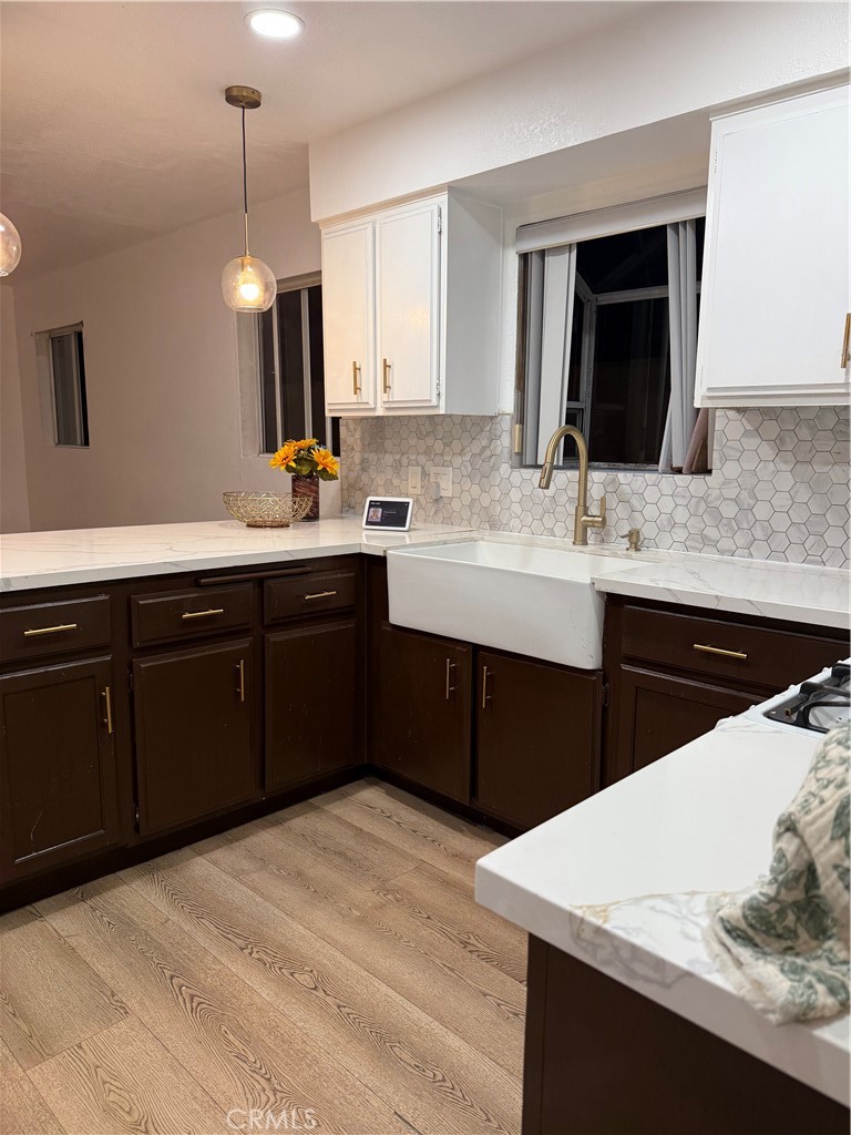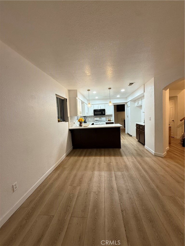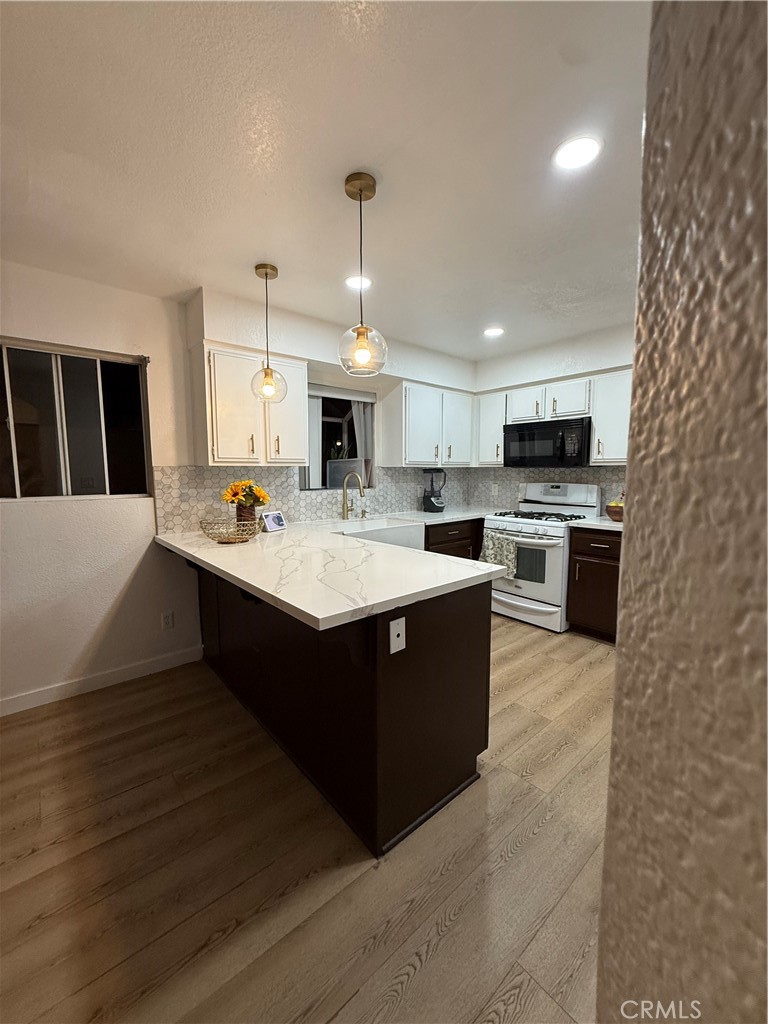 The modern kitchen offers quartz countertops, elegant two-tone cabinetry, pendant lighting, and a breakfast bar with plenty of counter space for cooking or gathering. Upstairs, the main bedroom includes two walk-in closets, vaulted ceilings and a double sink bathroom. Additional highlights include an in-unit laundry area, an attached two-car garage, and a low HOA of only $315 per month. Enjoy the comfort of a well-maintained home with modern upgrades, private outdoor space, and easy access to nearby shopping, dining, and freeways.