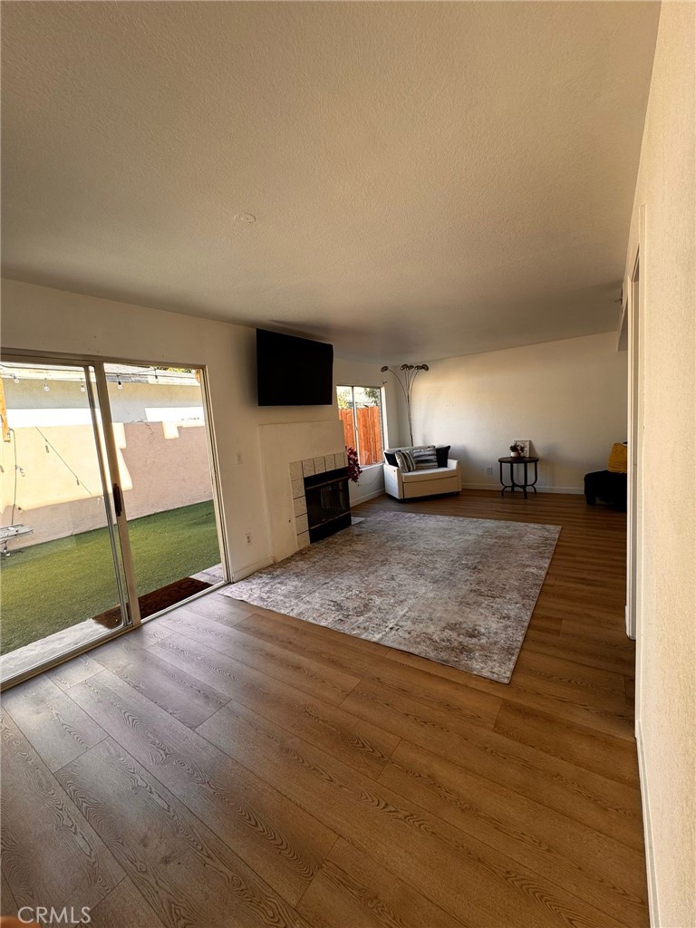 Welcome to this stunning two-story corner unit townhouse featuring 3 bedrooms and 2.5 bathrooms, perfectly combining style, comfort, and convenience. Step inside to find an inviting open layout with vinyl flooring and abundant natural light throughout. The spacious living room features a cozy fireplace and opens directly to a private patio — ideal for relaxing or entertaining under the evening string lights.