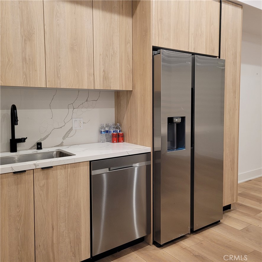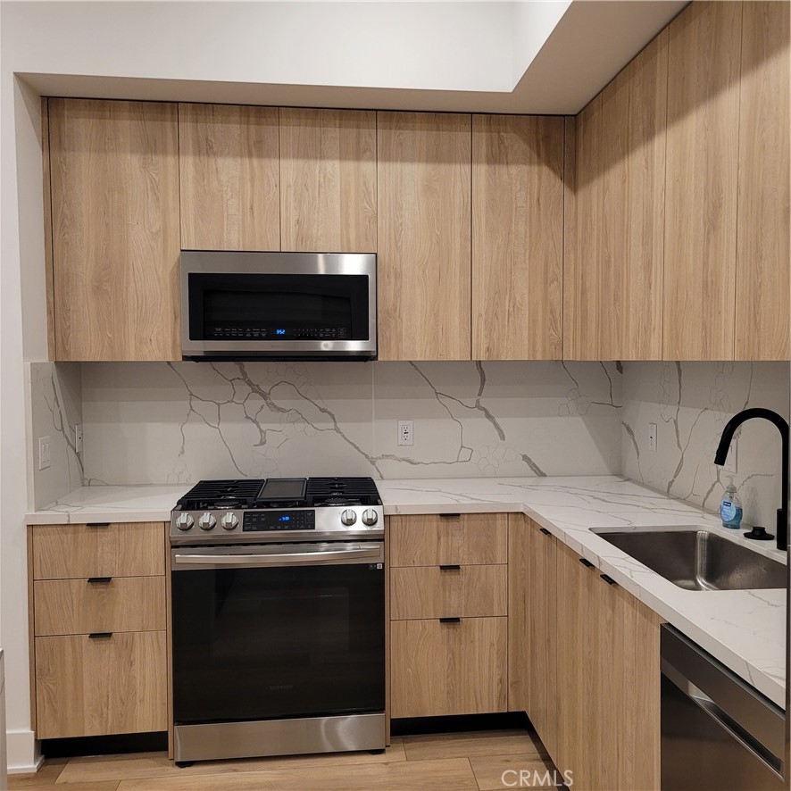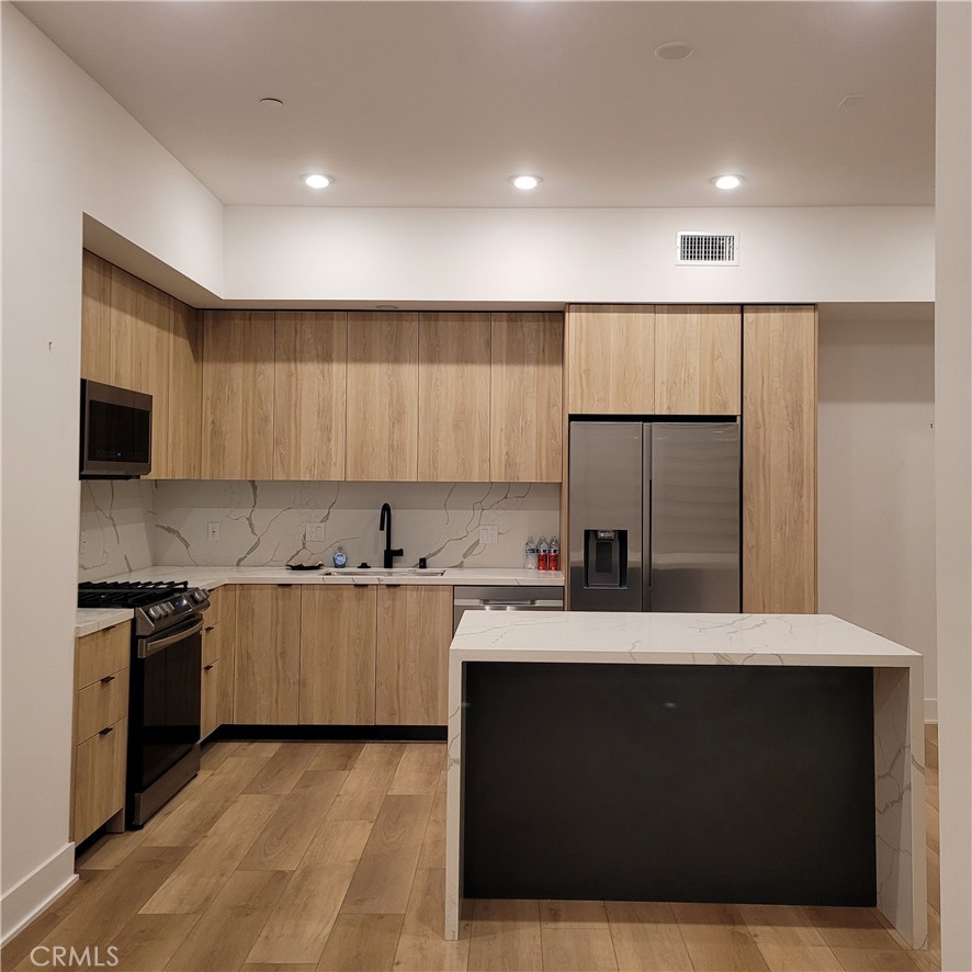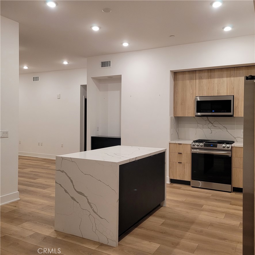 The bright, open-concept layout is filled with natural light, showcasing sleek hardwood floors and contemporary finishes throughout. The spacious living and dining areas create a welcoming atmosphere ideal for both relaxing evenings and entertaining guests. The modern kitchen is a chef’s delight, featuring stainless steel Samsung appliances, upgraded countertops, and ample cabinetry for all your storage needs.