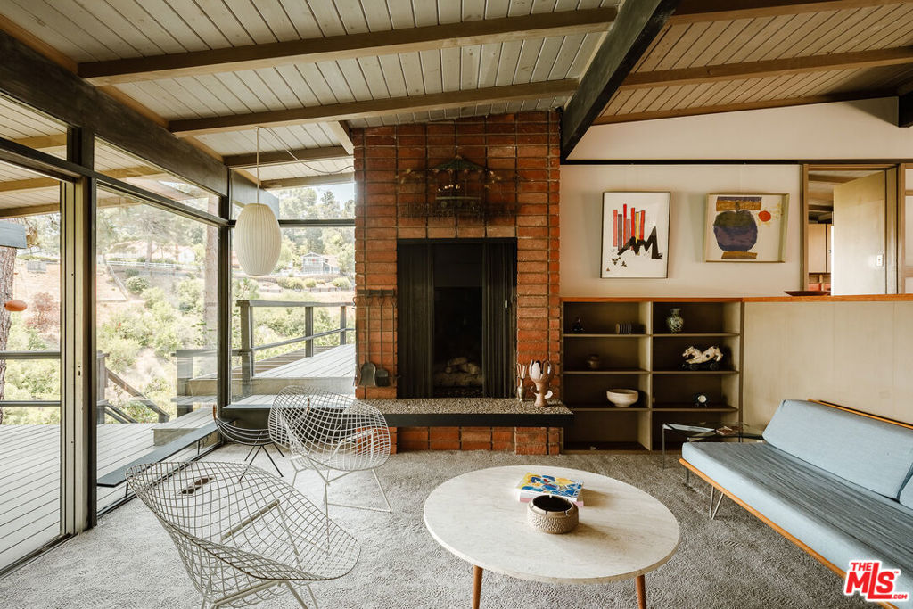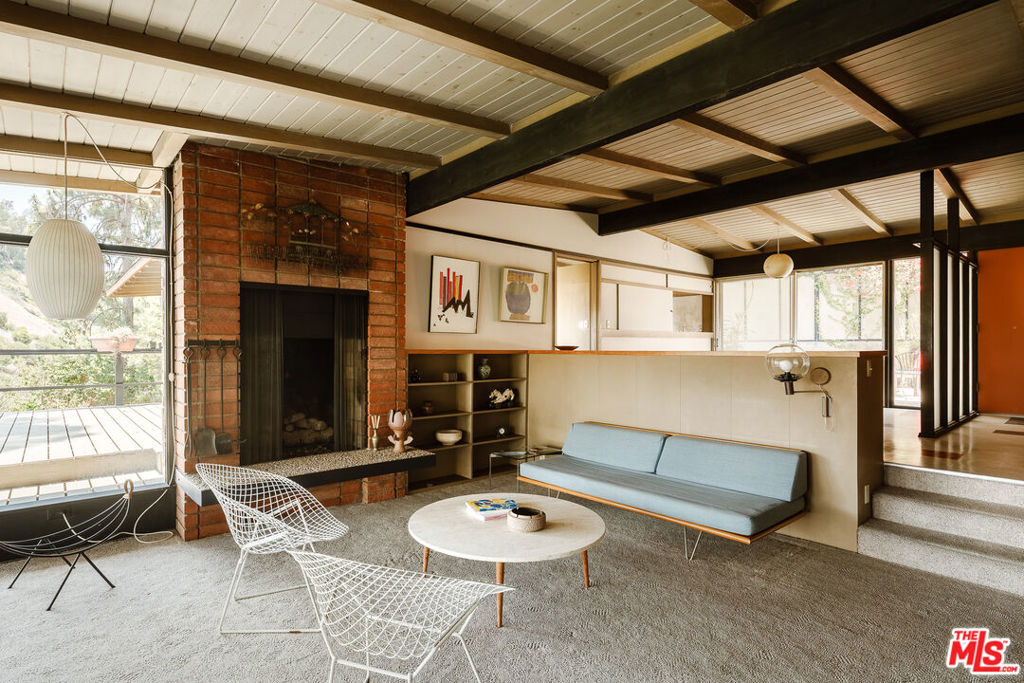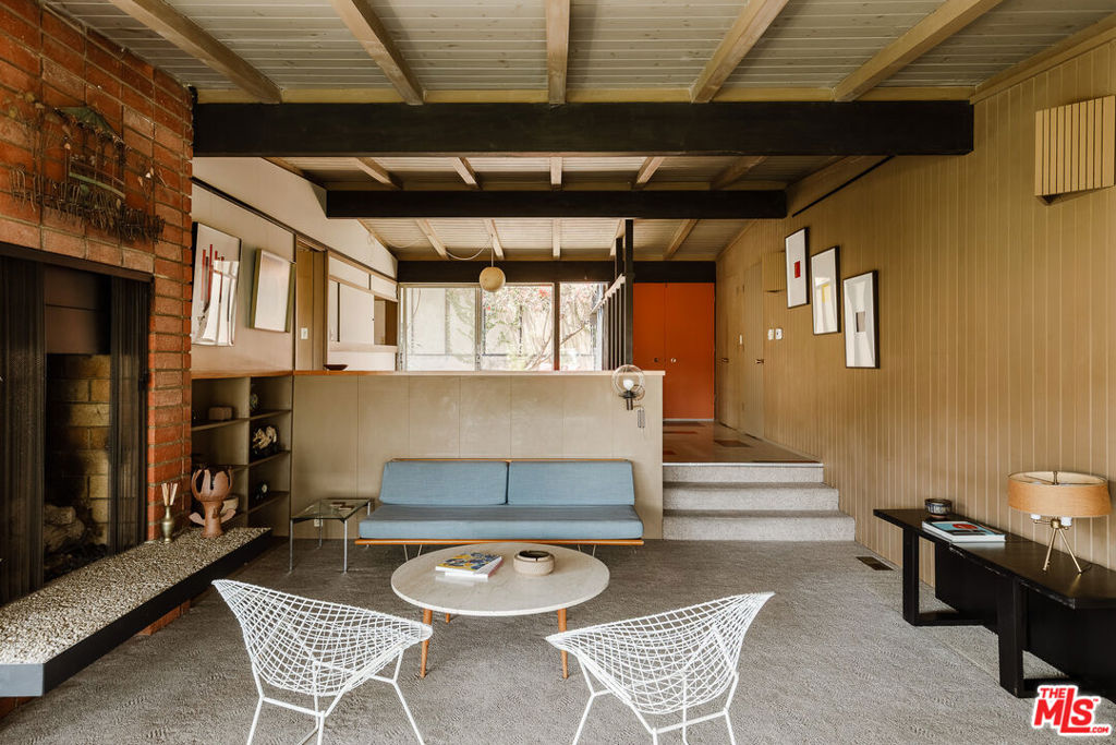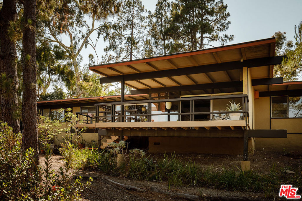 The Mitchell Residence, by architects Buff, Straub & Hensman (1959). Offered for only the second time since built- this distinctive and lovingly cared for home remains miraculously in almost entirely original condition. Situated on more than an acre in Rolling Hills Estates, the house embraces a tranquil and incredibly private setting with expansive floor to ceiling glazing. Exterior and interiors have been blended together seamlessly, with living spaces and adjacent decks placed amidst the towering pines to bring nature into every room. A split level delineates the open plan dining area, family room, and kitchen from the sunken living room and its monumental fireplace with cantilevered mantle. The details are exceptional: signature post and beam vocabulary, translucent glass screening, original light fixtures, and clever and abundant built-in cabinetry. Mature California native plantings populate the surrounding gardens. An idyllic canyon retreat with panoramic city and mountain views, ocean breezes, and a sense of solitude that belies its close proximity to the vibrant beach communities nearby.