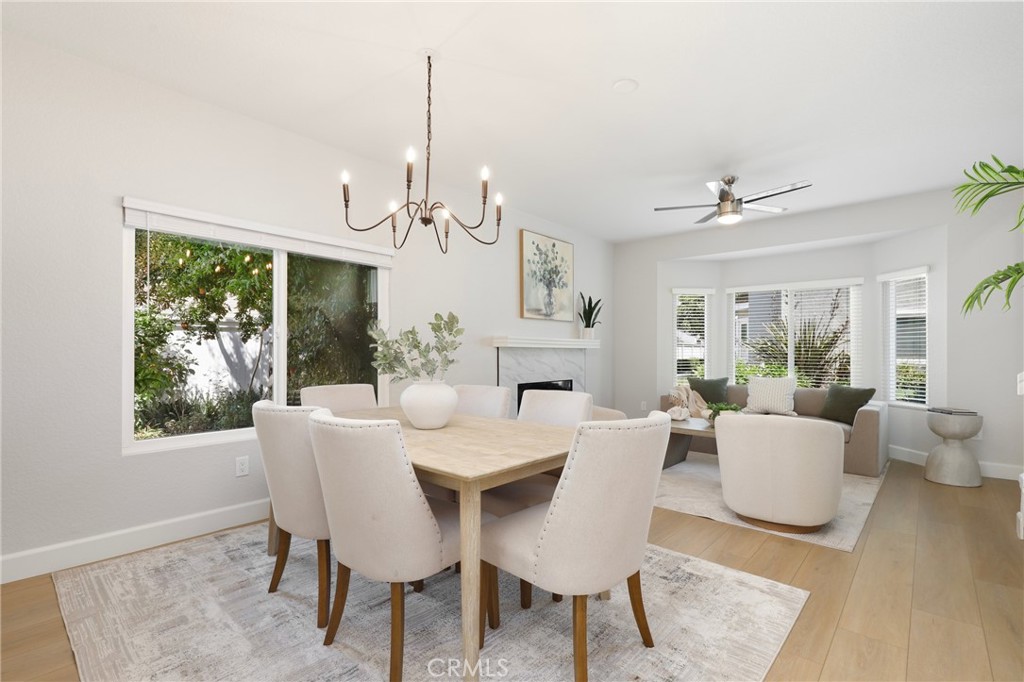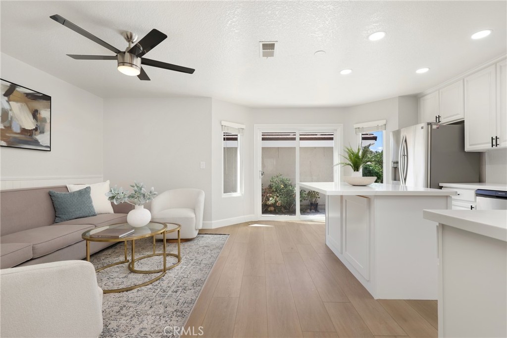 Welcome to this beautifully upgraded end-unit townhouse in the highly sought-after neighborhood of Woodbridge. Spanning 1,406 square feet, with 3 bedrooms and 2.5 baths, this light-filled, two-story residence is ideally located at a quiet cul-de-sac, boasting a rare, extra-large side yard adorned with lush green foliage and fruit trees. Step inside to discover a spacious living room accented by a cozy fireplace, abundant natural light, and new fresh designer paint throughout. Downstairs features newly upgraded Luxury Vinyl floors that complement the inviting kitchen and den area, complete with new quartz countertops, new tile back splash, white shaker-style cabinets, stainless steel appliances, and recessed lighting and eat at island. Upstairs, you'll find upgraded bathrooms with newer floors, faucets, high-end roller shower/tub door enclosures as well as new neutral carpet, new ceiling fans, and new custom-ordered mirrored closet doors. Enjoy the convenience of newer windows and patio doors with dual-pane glass, enhancing energy efficiency and tranquility. This townhouse offers more than just a home; it provides a lifestyle within the resort-like amenities of Woodbridge. Residents enjoy access to two lakes with docks, two beach lagoons, over 15 swimming pools and spas, including saltwater heated pools, along with over 20 tennis courts and several pickleball courts. The community also features numerous parks with playgrounds, volleyball courts, and scenic tree-lined streets perfect for leisurely walks. Located within the top-rated Unified Irvine School District, residents benefit from proximity to Springbrook Elementary, Lakeside Middle School, and renowned Woodbridge High School, all within walking or biking distance. Easy access to major routes such as I-405 and I-5 makes commuting a breeze, while world-class shopping, dining, beaches, UCI, and the Irvine Business Complex are just moments away. With no Mello Roos tax and one of the most central and desirable locations in Irvine, this special home offers a rare opportunity that won't last long!