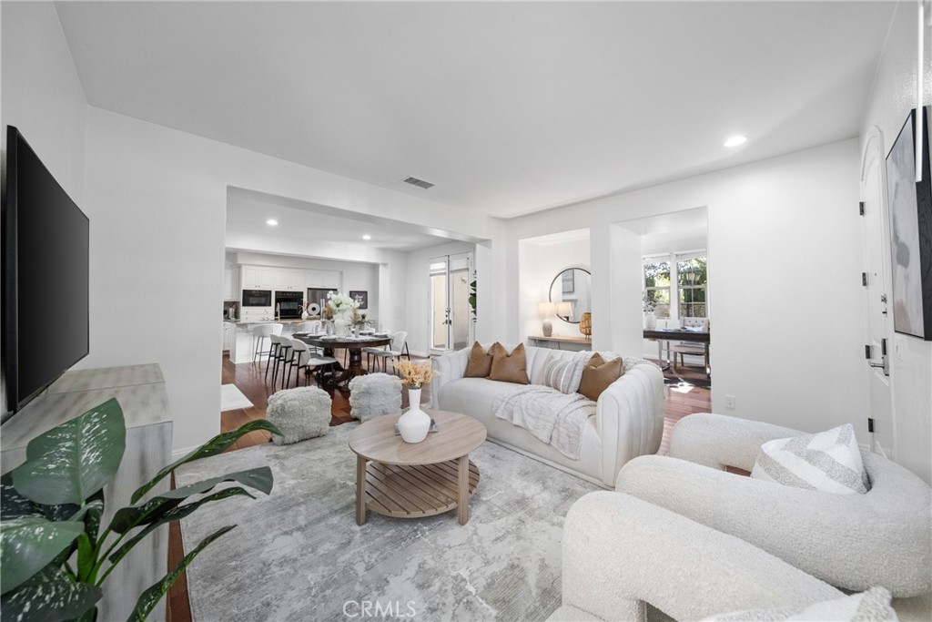 Charming detached home in Woodbury, ideally located facing a lush greenbelt and next to one of the most picturesque walking paths in the neighborhood. Features an open floor plan with a spacious great room, gourmet kitchen with granite countertops, center island, abundant cabinetry, and hardwood flooring throughout. French doors open to a private enclosed patio, perfect for indoor-outdoor entertaining. A main-floor bedroom with full bath offers ideal guest privacy. The elegant master suite includes a Juliet balcony with serene neighborhood views. Just steps from Woodbury Elementary School, and enjoy access to resort-style amenities: 7 pools (including an Olympic-size), 16 parks, tennis courts, trails, and more. Close to shopping, top schools, and major freeways for easy commuting.