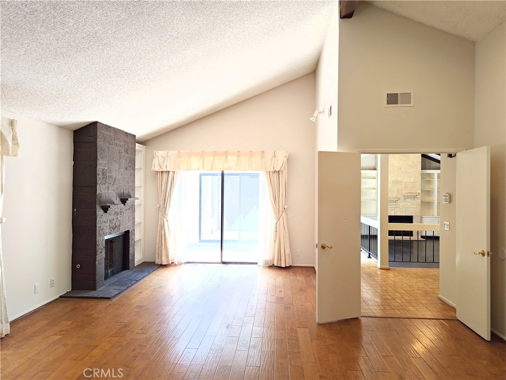 This well maintained 3-bedroom and 2.5-bath home blends timeless charm with modern comfort. A private gated walkway leads to a welcoming step-down living room with vaulted wood-beam ceilings and a fireplace, flowing into a formal dining room that opens to a sunny patio.