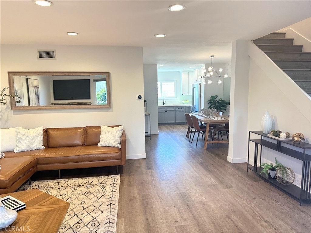 Tastefully remodeled 3 bedrooms + DEN. One of the best location with amazing ocean views from upstairs bedrooms. Highly desirable gated community of beautiful Ridgegate. Open concept floor plan with large living room, fireplace & dining room. Remodeled kitchen has quartz counters, newer cabinets & appliances. Den is located at main level can be used as an office, family room, playroom or as the 4th BEDROOM. All other 3 good sized bedrooms upstairs. High quality vinyl wood flooring throughout. Smooth ceiling with recessed lights in every room. Central heating & AC. Newer raised panel interior doors with black hardware. Double pane windows & patio door. EV charging in garage. Charming private courtyard leads to two-car garage. Beautiful community comes with gated entry with guard & security, pools, tennis/pickleball courts. Close proximity to award winning Peninsula High, Ridgecrest Intermediate school, shopping center, market & restaurants.