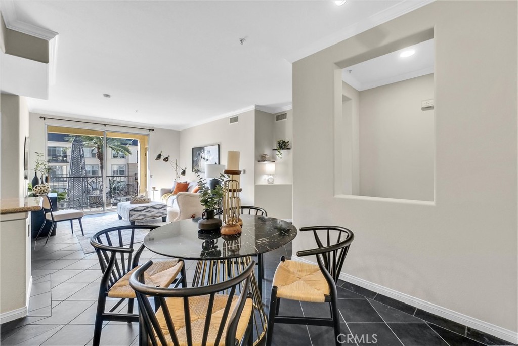 Experience unique urban living and a luxurious lifestyle in this immaculate third-floor residence within the resort-style Watermarke Community. Step inside to a bright, airy floorplan that immediately feels like home, featuring handsome slate flooring in the living and dining areas and brand-new carpet in both bedrooms. The open kitchen is designed to delight the household chef, complete with granite countertops and stainless-steel appliances. Just off the living room, a private patio invites you to relax with sunset views or welcome guests while overlooking the entry to the clubhouse and its beautifully landscaped circular driveway. The primary bedroom offers comfort and convenience with a ceiling fan, a generous walk-in closet, and sleek tiled flooring. On the opposite side of the living room, you’ll find the secondary bedroom, a full bathroom, and a laundry room with good storage space; perfect for privacy and functionality. Residents of Watermarke enjoy exceptional amenities, including concierge service, a full kitchen and gathering space in the clubhouse, a private 35-seat theatre, pool, spa, tennis court, and regular community events. Located just moments from John Wayne Airport, UCI, Fashion Island, Newport Beach, and a wealth of shopping and dining options, this home places the best of Irvine at your doorstep. Luxury living made attainable—come tour this beautiful residence and make it yours today.