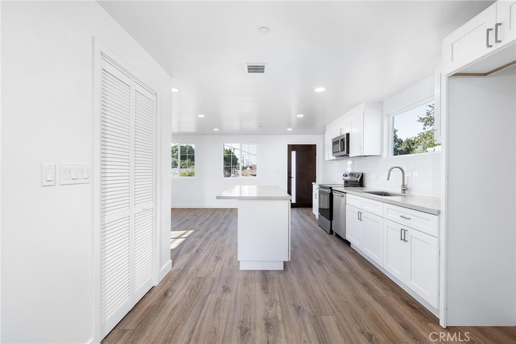 Newly constructed 2-bedroom ADU at the rear of the property located at 496 E 52nd Street. This is the upper unit of 2 ADU's completed in 2026. Never been lived in. Approximately 784 square feet of living area. Beautifully appointed throughout with double pane windows. engineered hardwood floors, recessed lighting, quartz countertops in kitchen and bath, air conditioning, tankless water heater and washer and dryer. Modern kitchen with island and open living area. Marble faced step in shower. Perfect for single or couple starting out. Entry to this unit is a private staircase on the back side of the building. On the lower level of this building is a 1 bedroom 1 bath ADU (498A E 52nd Street) also for rent. The front Spanish house (496 E 52nd is also for rent)