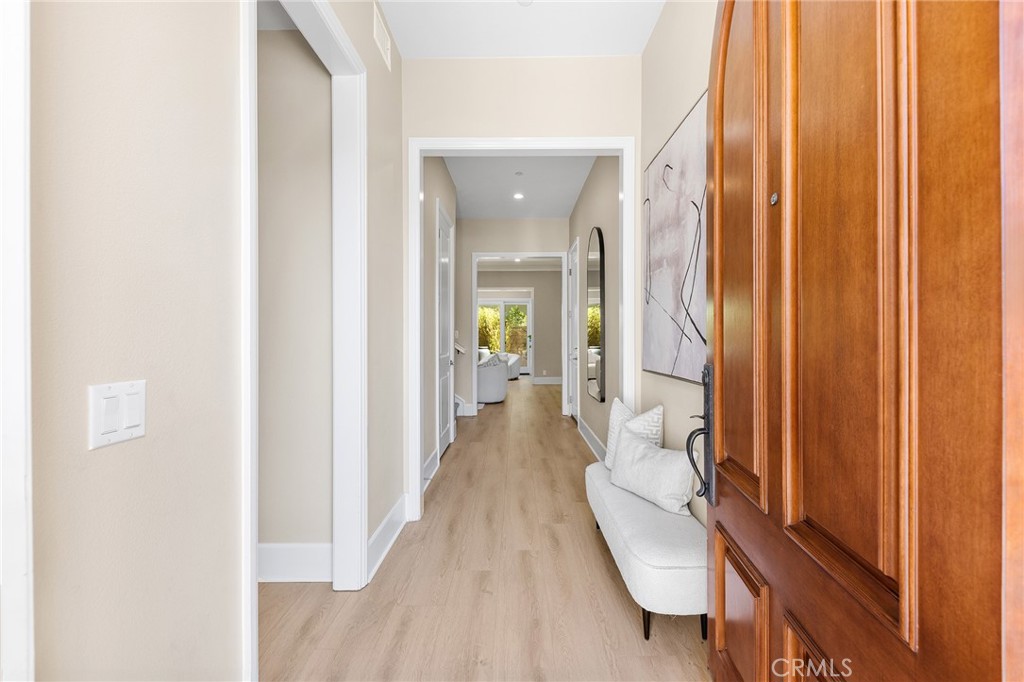 Welcome to 51 Thoroughbred, a stunning newer-construction end-unit home located on a private cul-de-sac in the desirable Strada community of Orchard Hills. This residence boasts soaring cathedral ceilings and an open floor plan, creating a bright and inviting living space. Expansive glass doors and windows open to a beautifully landscaped backyard featuring travertine flooring, a water feature, and a built-in BBQ island with seating—perfect for outdoor entertaining. The interior has been upgraded with brand-new flooring throughout, complementing the gourmet kitchen with custom tile backsplash, a large center island with seating, KitchenAid appliances, ceiling-height cabinetry, and a walk-in pantry. A convenient downstairs bedroom and full bath are ideal for guests or multi-generational living. Upstairs, a versatile loft offers space for a playroom, office, or media room. The serene primary suite includes a customized walk-in closet and spa-inspired bath with dual vanities, a soaking tub, and a separate shower. Two additional bedrooms, a full bath with double sinks, and a spacious laundry room complete the upper level. Additional highlights include a reverse-osmosis water filtration system, whole-house water softener, plantation shutters, automatic outdoor lighting and irrigation, and a garage with epoxy flooring and extensive built-in cabinetry. Residents of Orchard Hills enjoy resort-style amenities including pools, spas, BBQ areas, basketball courts, and playgrounds. Conveniently located near major freeways, toll roads, premier shopping and dining, and within the award-winning Irvine Unified School District including Northwood High School.