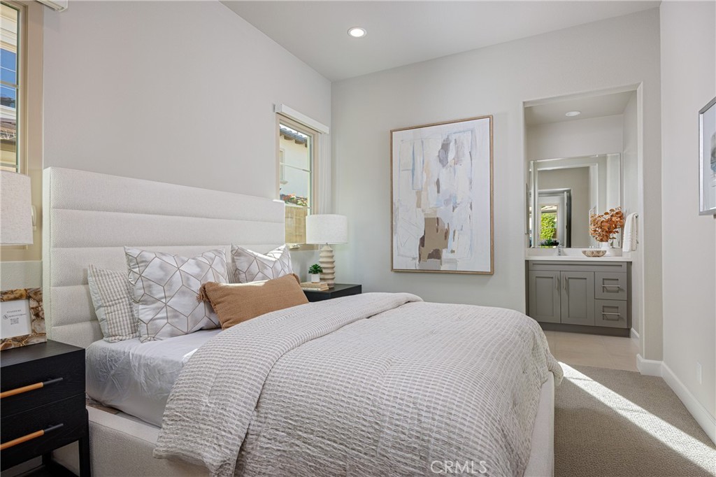 Located behind the guarded gates of one of Irvine’s most highly sought-after communities, Orchard Hills, this exquisitely finished 4-bedroom, 4.5-bathroom home features over $400,000 in high-end upgrades. Enter through the front door and you are immediately greeted by an open-concept floor plan that offers everything you could desire. The living room is centered around a fireplace, making it the perfect spot for cooler nights, and flows seamlessly into the chef-inspired kitchen, the true heart of the home. No corners were cut in its design: granite countertops cover the waterfall island and full backsplash, real wood cabinetry extends to the ceiling, and top-of-the-line appliances include a six-burner KitchenAid range, stainless steel hood, dishwasher, built-in refrigerator/freezer, additional wine fridge, and a walk-in pantry. The main living space offers the ultimate indoor-outdoor experience, thanks to upgraded 90-degree sliding glass doors that open to a covered California room and private backyard with all the bells and whistles. A sunken fire pit with built-in seating, BBQ area, custom stone lighting fixture, and a professionally designed putting green are all surrounded by mature hedges, providing exceptional privacy from neighboring homes. The first floor also includes a separate dining area, powder bathroom, extra storage, and two of Irvine’s most desirable features: a private home office and a downstairs bedroom with its own en-suite bathroom. Upstairs, you are welcomed by a spacious loft, perfect for movie nights or a study area. The primary bedroom comfortably accommodates a king-size bed and overlooks the nearby park. The primary bathroom is filled with upgrades, including a soaking tub, stone countertops, upgraded tile flooring, a walk-in shower with floor-to-ceiling tile work, real wood cabinetry, a private toilet room, and dual vanities. The primary closet is fully built out to maximize storage. Two additional upstairs bedrooms each feature their own bathrooms and added closet space. The garage has also been thoughtfully upgraded with epoxy flooring and a built-in water softener system. One of the home’s standout features is its location, just a one-minute walk to a nearby park and only minutes from additional parks offering pools and sport courts. All of this is set within one of Orange County's most highly sought-after school districts and just minutes from shopping, dining, entertainment, and travel conveniences.