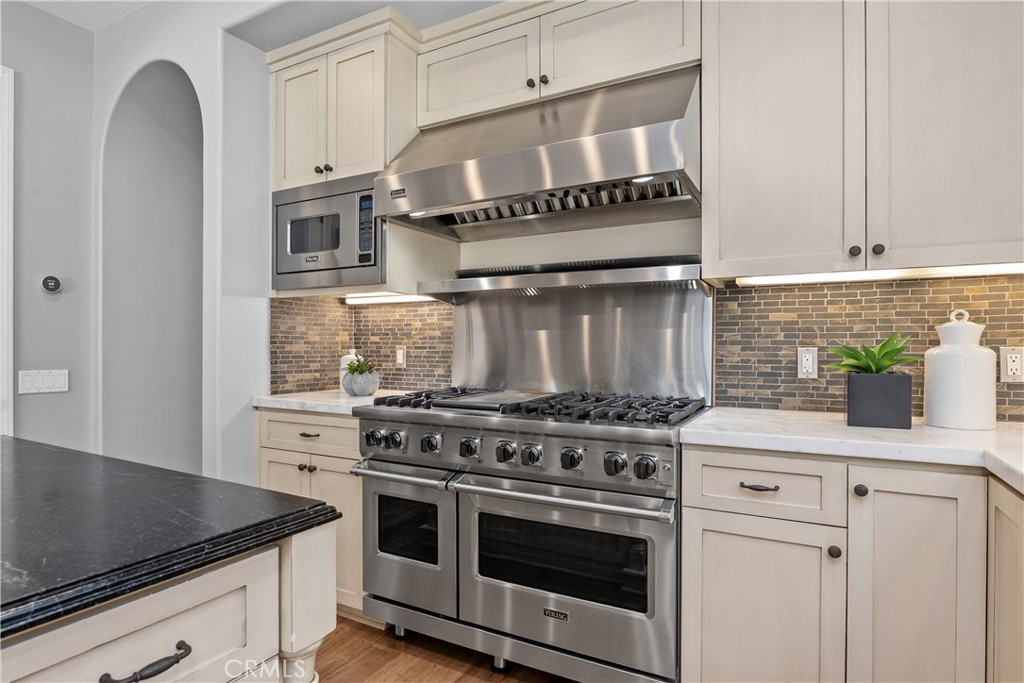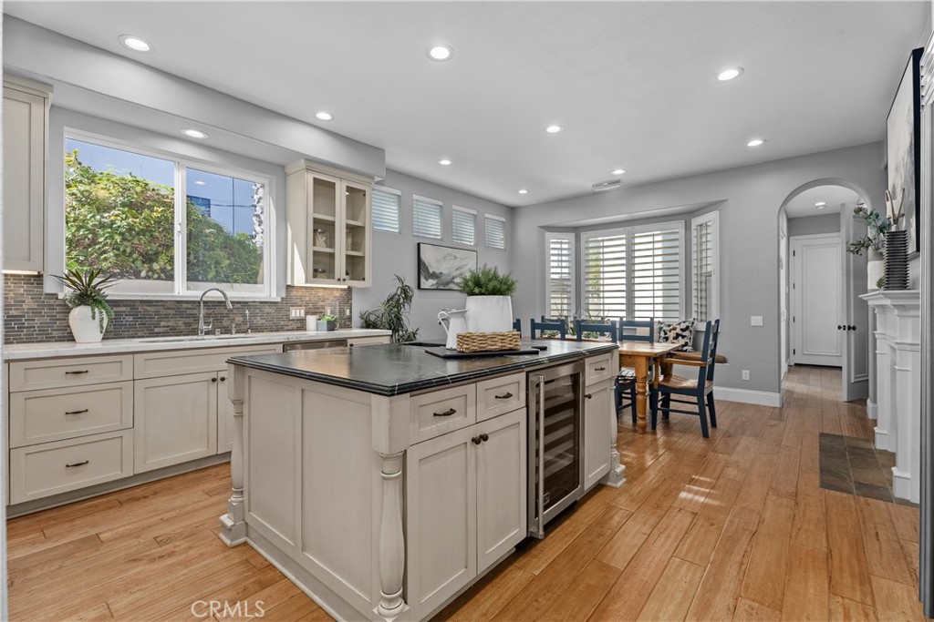 Gorgeous three-story beachside residence located blocks from the ocean and minutes from downtown Huntington Beach, offering convenient access to the Pier, Main Street dining, shopping, and entertainment. This beautifully designed home features 3 bedrooms, 3 full bathrooms, and 2 powder rooms with a spacious layout that blends modern finishes and coastal charm. The first level offers new hardwood floors with 9+ foot ceilings, abundant natural light, plantation shutters, and French doors opening to a private landscaped front patio, creating seamless indoor-outdoor living. The gourmet kitchen is appointed with a soapstone island, Calacatta marble countertops, SubZero and Viking stainless steel appliances, and a wine cooler, complemented by an elegant dining area and breakfast nook with bay window overlooking a side patio ideal for outdoor dining. First-floor amenities include a powder bathroom, laundry room, and direct access to the garage. The home is equipped with whole house water softening, app-accessible smart features including Lutron autonomous lighting, MyQ garage entry access, and central AC with Nest equipment for enhanced convenience and efficiency. The second level features a spacious family room with a dramatic double-height ceiling, fireplace, and expansive windows, along with a primary suite offering dual closets including a walk-in, a spa-style bathroom with jetted tub and separate shower, and French doors leading to a private balcony. Secondary bedrooms share a Jack-and-Jill bathroom, with an additional separate powder bathroom located in the hallway. The third level provides a generous multipurpose room with built-in shelving suitable for a home office, den, or additional living space, plus a full bathroom with shower and access to another private balcony. Located within a highly regarded school district, this home offers a rare opportunity for coastal living with various outdoor spaces, flexible living areas, and a prime Huntington Beach location.