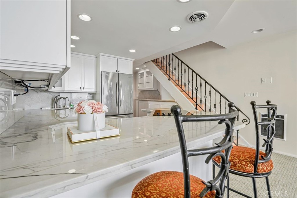 Beautiful ocean front, panoramic view, remodeled unit in Sand Castle. 1 bedroom and bath down and large loft primary suite with bath including brand new shower and change area. The living room, open kitchen and loft have full ocean views. Skylights and windows have remote control shades for your convenience. Pull up a chair on your nice sized balcony with views of Palos Verdes, Coastline, Topaz jetty, Redondo Pier and King Harbor to Malibu. Catch mesmerizing sunsets, dolphins, sail boats and all the activity coming and going out of the harbor, 2 convenient side by side parking spots with large storage lockers. Walk or bike to Riviera Village and enjoy all the restaurants and shopping it has to offer. Whether it's living full time or weekend getaway, this one checks all the boxes. Can be leased furnished or unfurnished, call for details.