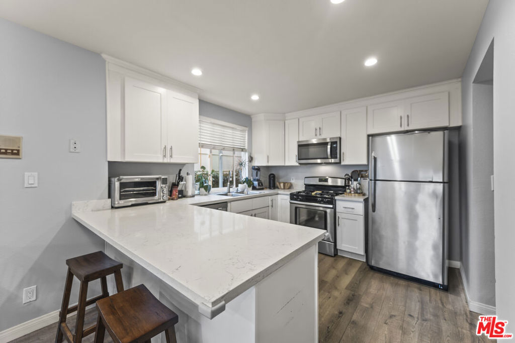 This vibrant 2-bedroom, 2-bathroom large corner unit in Ocean Park, Santa Monica, offers an ideal living space in a charming neighborhood just blocks away from Main Street and the beach. Recently remodeled, this apartment features a spacious living area with recessed lighting, and newer laminate wood floors throughout. A large and private terrace just of the living room. The modern kitchen boasts soft-close cabinetry, white quartz countertops, and stainless-steel appliances including a stove, refrigerator, dishwasher, and microwave. The two generously sized bedrooms offer ample closet space, with the large primary suite serving as a peaceful retreat. The primary includes a large closet and a walk-in closet along wit a newer en-suite bathroom with tub. The guest bedroom also has two closets and a newer remolded bathroom with a shower and tub. Parking is two assigned, side-by-side gated parking spaces, and there is an option for a third parking space. A stacked washer and dryer are conveniently located in the unit. Ocean Park is a highly sought-after area known for its tranquil, tree-lined streets and proximity to three parks, as well as a variety of trendy shops, cafes, and restaurants. Located less than a mile from the beach, this apartment offers easy access to the shoreline. The security deposit is one month's rent, and pets are not allowed. Perfectly positioned in a peaceful yet lively community, this apartment is a fantastic place to call home. This is a NO Pet building. Tenants vacate January 31st 2026, but may show before Jan 31st,