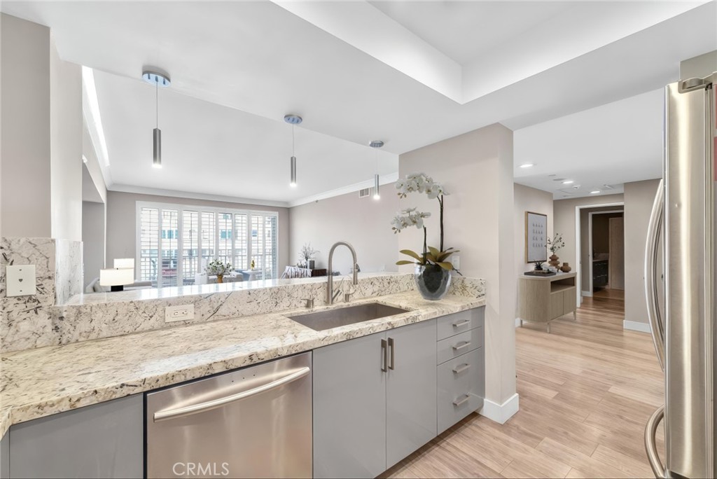 WHERE ELEVATION DEFINES DISTINCTION. This fully remodeled penthouse is absolutely stunning, with every detail thoughtfully designed for effortless coastal living. The chef’s kitchen has been completely transformed, down to the last detail, featuring custom cabinetry, granite countertops, and professional grade stainless steel appliances, perfect for entertaining or everyday living. The bathrooms are spa inspired retreats, each meticulously designed to combine luxury and tranquility. Rich wood floors, an open concept layout, and walls of glass frame breathtaking views of the Pacific Ocean, Rainbow Harbor, and the Queen Mary. Every element of this 2 bedroom, 2 bath, 1,587 square foot home has been carefully curated, making it completely move in ready. Here, the elegance and comfort of a large, luxurious home are captured in a sophisticated, low maintenance lifestyle, plus the vibrant energy of the Pacific High Rise is right below your feet. Enjoy premier dining, exclusive clubs, and social experiences just steps from your door. Two dedicated parking spaces, on site storage, and access to concierge services, a guest suite, and resort style amenities complete this rare coastal lifestyle. Turnkey, elevated, and undeniably exceptional, this penthouse is where elegance meets the Pacific.